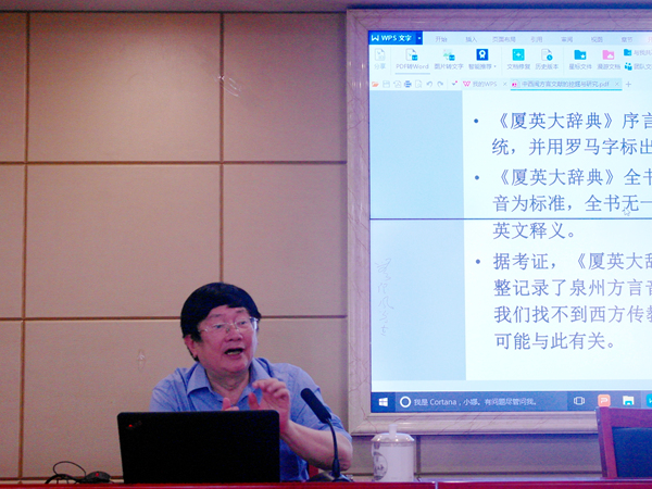621日上午,福建师范大学马重奇教授受邀来公司,为公司师生带来一场题为《中西闽方言文献的挖掘与研究》的讲座。讲座在文科楼B4-1教室举行,语言系徐前师教授、尹戴忠教授、李康澄副教授、曾春蓉副教授、秦凤鹤老师及语言系15级、16级员工到场聆听讲座。此次讲座由徐前师教授主持。