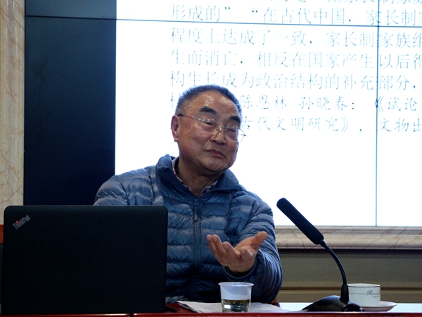 全场座无虚席,在张晚林教授介绍完毕后,一个关于中国美学的家国情怀,在陈望衡教授的娓娓道来之下缓缓展陈。陈望衡教授首先从家、国意识的建构讲起,推及到家的起源、国的起源,以及家与国的内在关联性:“家—国”意识初见于史前仰韶文化时代,“家”是人伦之本,“国”是保证人伦秩序运行的机器,就中华民族来说,家与国具有某种同一性。