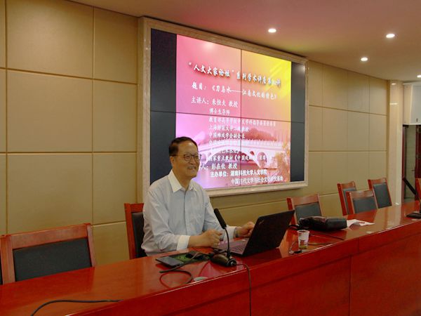 5月24日晚,上海师范大学朱恒夫教授应邀于立言楼B4-1开展以“‘刀与水’的江南文化特色”的主题讲座,本次讲座由文学专业彭在钦教授主持,16级文学专业全体员工到场聆听。