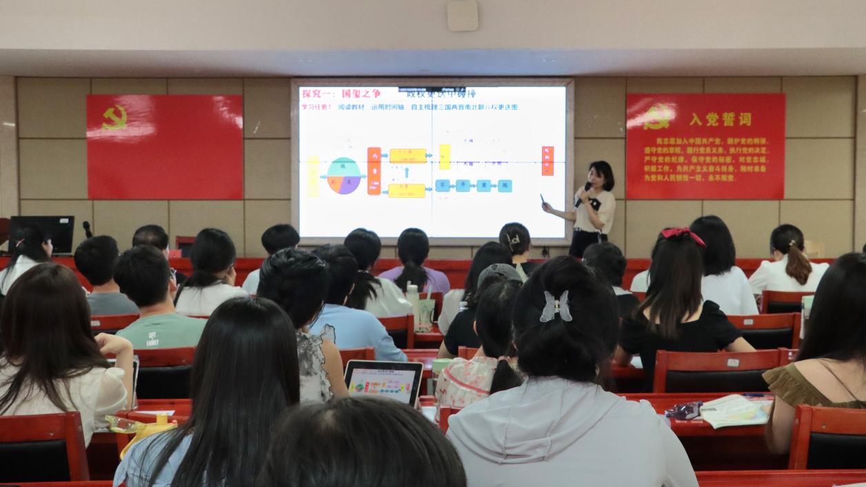 “我一直在思考,作为一名教师我应该教什么,如何教”,沈斌老师以问题展开讲座,“在有限的45分钟内,如何平衡员工的兴趣与教材知识点的关系是一直以来的困惑。”对此,沈老师指出,首先要确定讲什么,讲课内容可以打乱教材,但要始终围绕重点。其次,讲课时应注重让员工自主学习、梳理时间线,不能只顾自己讲,要用情境教学、问题教学等方式让员工真正参与到课堂中去。在谈到自己作为教师的心得时,她表示:“历史老师使命感还是很重的,在课堂中应该更多去给员工弘扬正能量。”